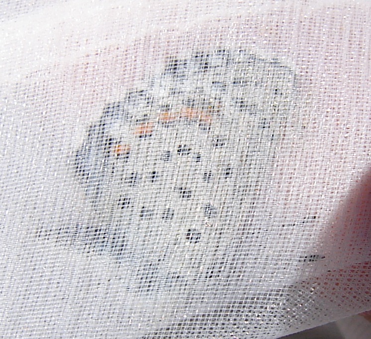 Pas moyen de faire une meilleure photo... :lol: J'ai pas osé le prendre entre deux doigts de peur de lui faire mal... Soulève le filet pour mieux le voir... :lol: