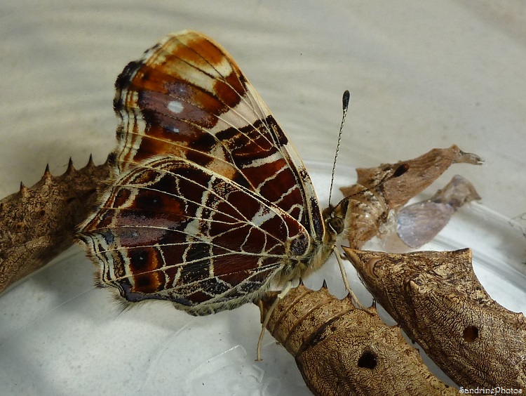J'avais récupéré quelques chrysalides fixées sur une cabane en bois, il y a un mois. Certaines avaient été perforées par un insecte (guêpe?) et deux autres semblaient être pleines.